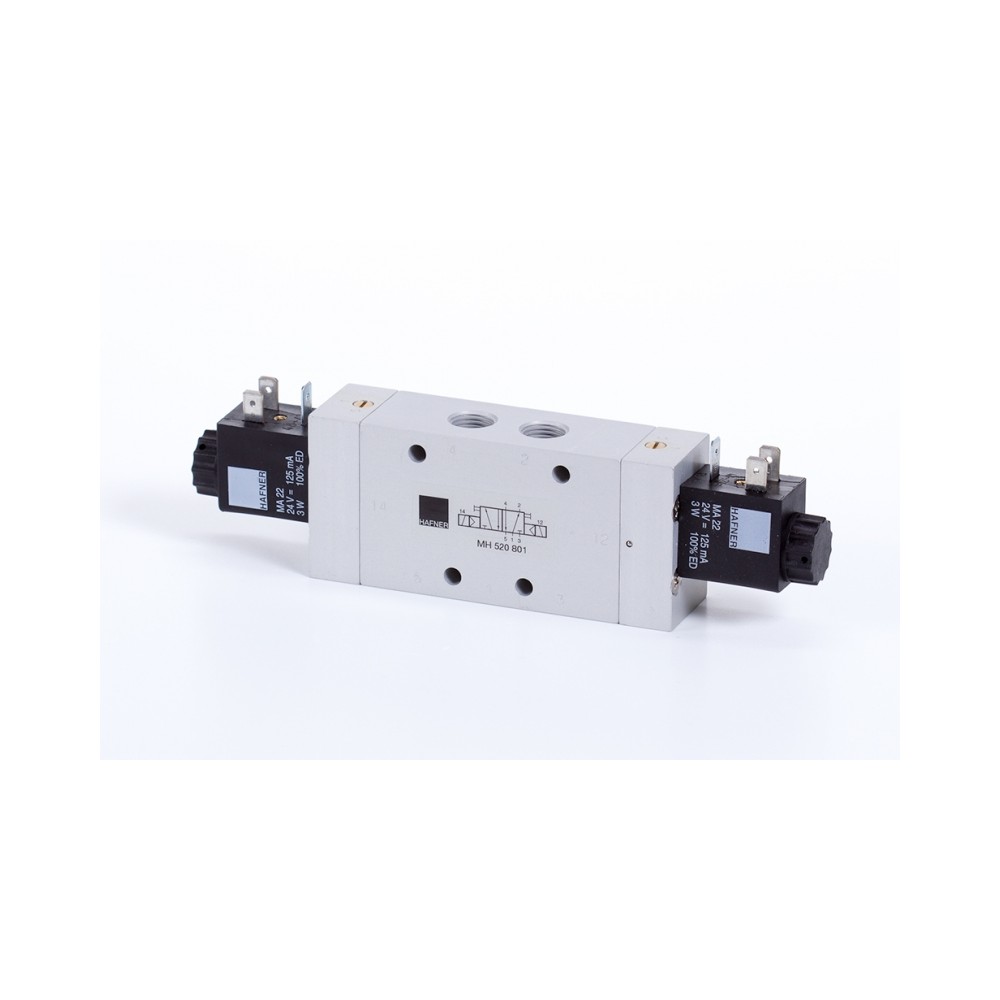5/3-as elektromos vezérlésű szelep, középállásban zárt - G1/4"