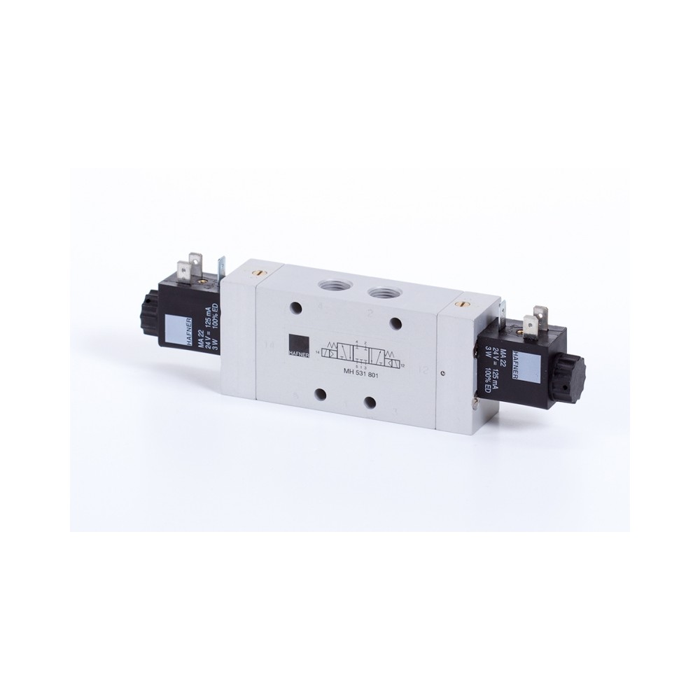 5/3-as elektromos vezérlésű szelep, középállásban leszellőztetett - G1/4"